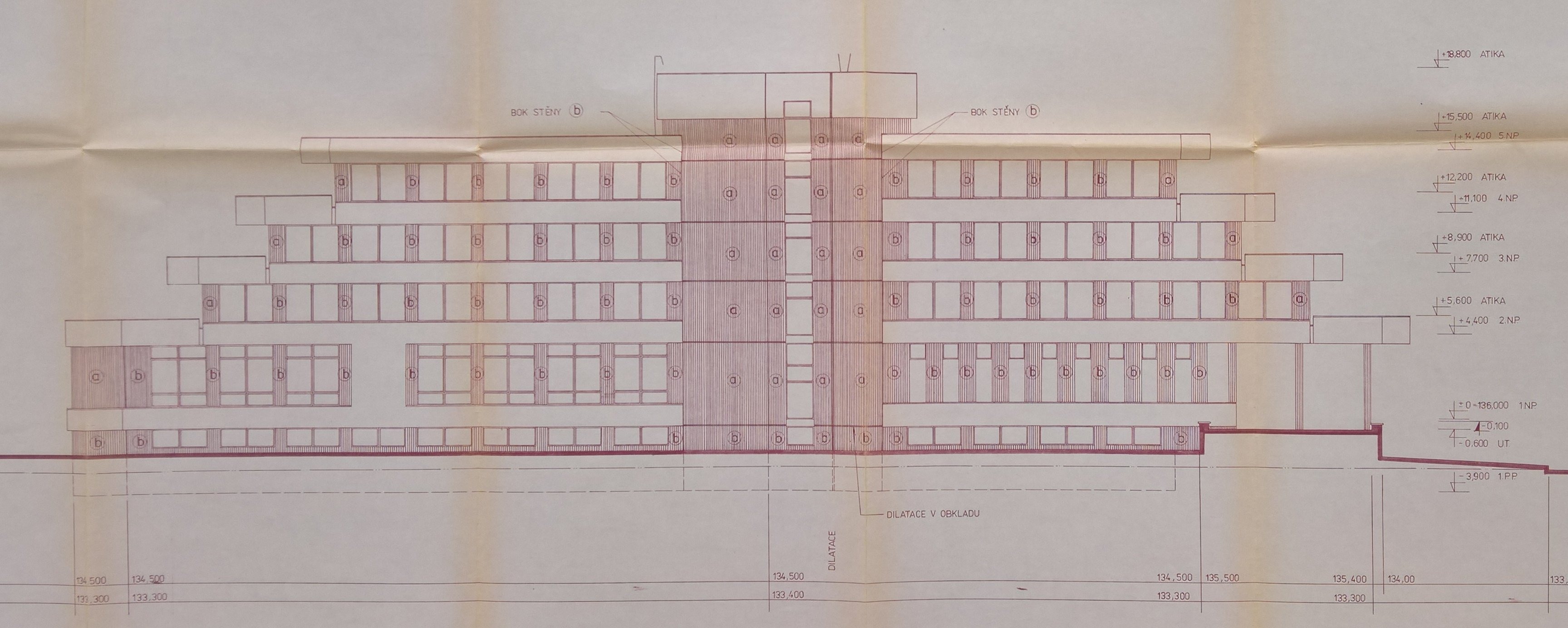 Přechodnou úpravu provozu během stavby dostalo za úkol vyřešit ČVUT – fakulta architektury a pozemního stavitelství v Praze. Asi nikdo v té době netušil, že budovu bude nakonec ČVUT vlastnit a využívat. Orientační časový plán stavby předpokládal projekt v letech 1974 – 1976, zahájení stavby v roce 1977 a ukončení výstavby v letech 1979 – 1980. Finanční náklady byly odhadovány na 31,4 miliónů Kčs. Investor byl Krajský výbor KSČ Ústí nad Labem, uživatelem pak Okresní výbor. Projekt byl zadán národnímu podniku Stavoprojekt Liberec. Vedoucím ateliéru byl Ing. arch. B. Lisal, vedoucím projektantem Ing. arch. M. Netolička. Samotnou stavbou byl jako generální dodavatel pověřen další národní podnik Pozemní stavby.