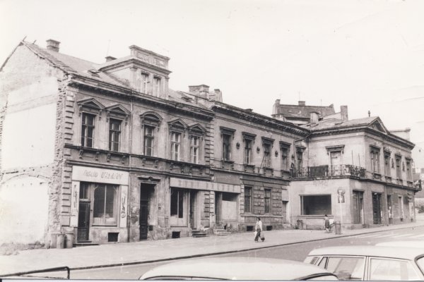 Na předchozím obrázku zmíněný navazující blok budov z doby těsně před demolicí. Z původního divadla už zbyl jen otisk na boční fasádě.