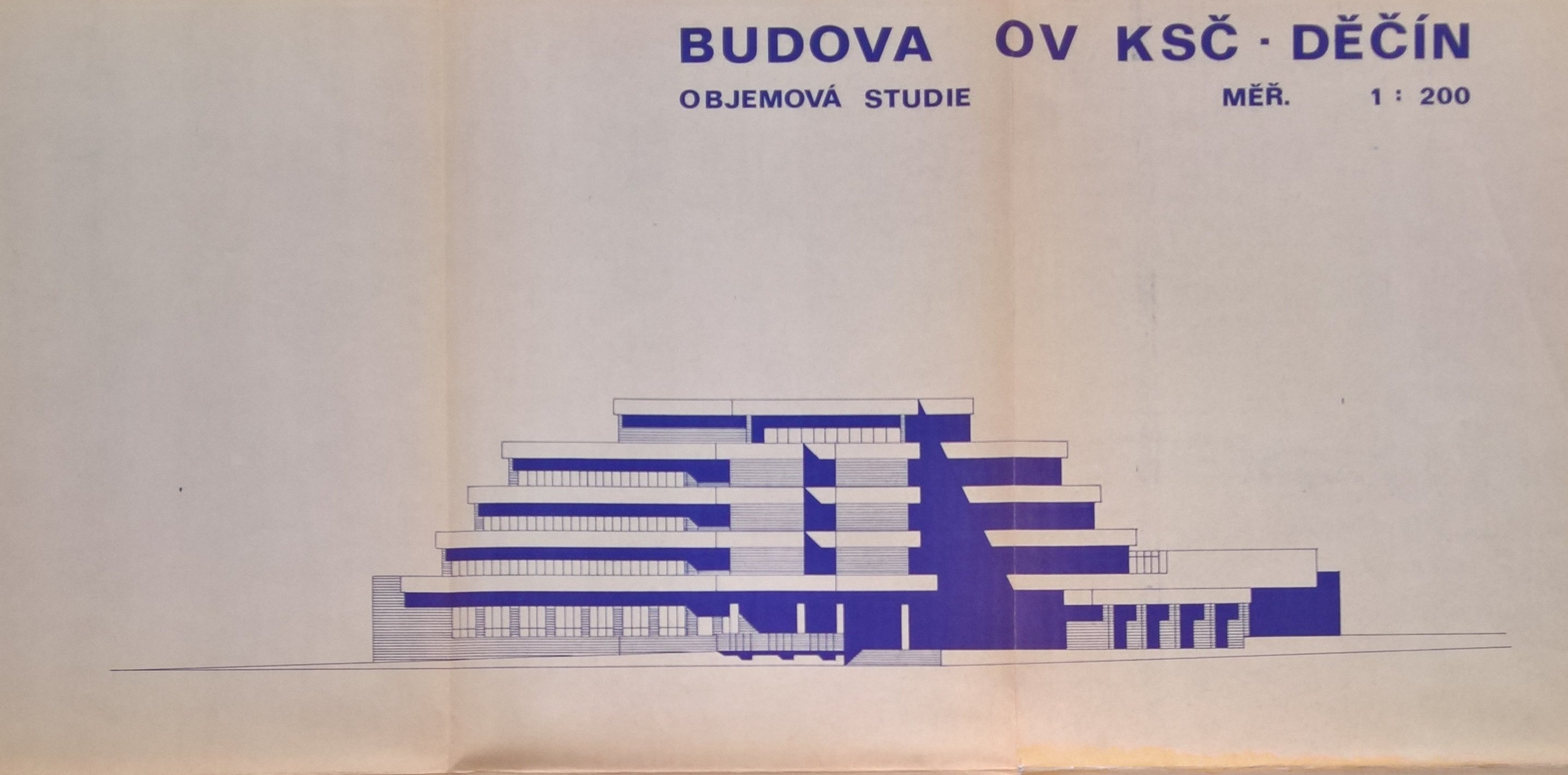 Přechodnou úpravu provozu během stavby dostalo za úkol vyřešit ČVUT – fakulta architektury a pozemního stavitelství v Praze. Asi nikdo v té době netušil, že budovu bude nakonec ČVUT vlastnit a využívat. Orientační časový plán stavby předpokládal projekt v letech 1974 – 1976, zahájení stavby v roce 1977 a ukončení výstavby v letech 1979 – 1980. Finanční náklady byly odhadovány na 31,4 miliónů Kčs. Investor byl Krajský výbor KSČ Ústí nad Labem, uživatelem pak Okresní výbor. Projekt byl zadán národnímu podniku Stavoprojekt Liberec. Vedoucím ateliéru byl Ing. arch. B. Lisal, vedoucím projektantem Ing. arch. M. Netolička. Samotnou stavbou byl jako generální dodavatel pověřen další národní podnik Pozemní stavby.