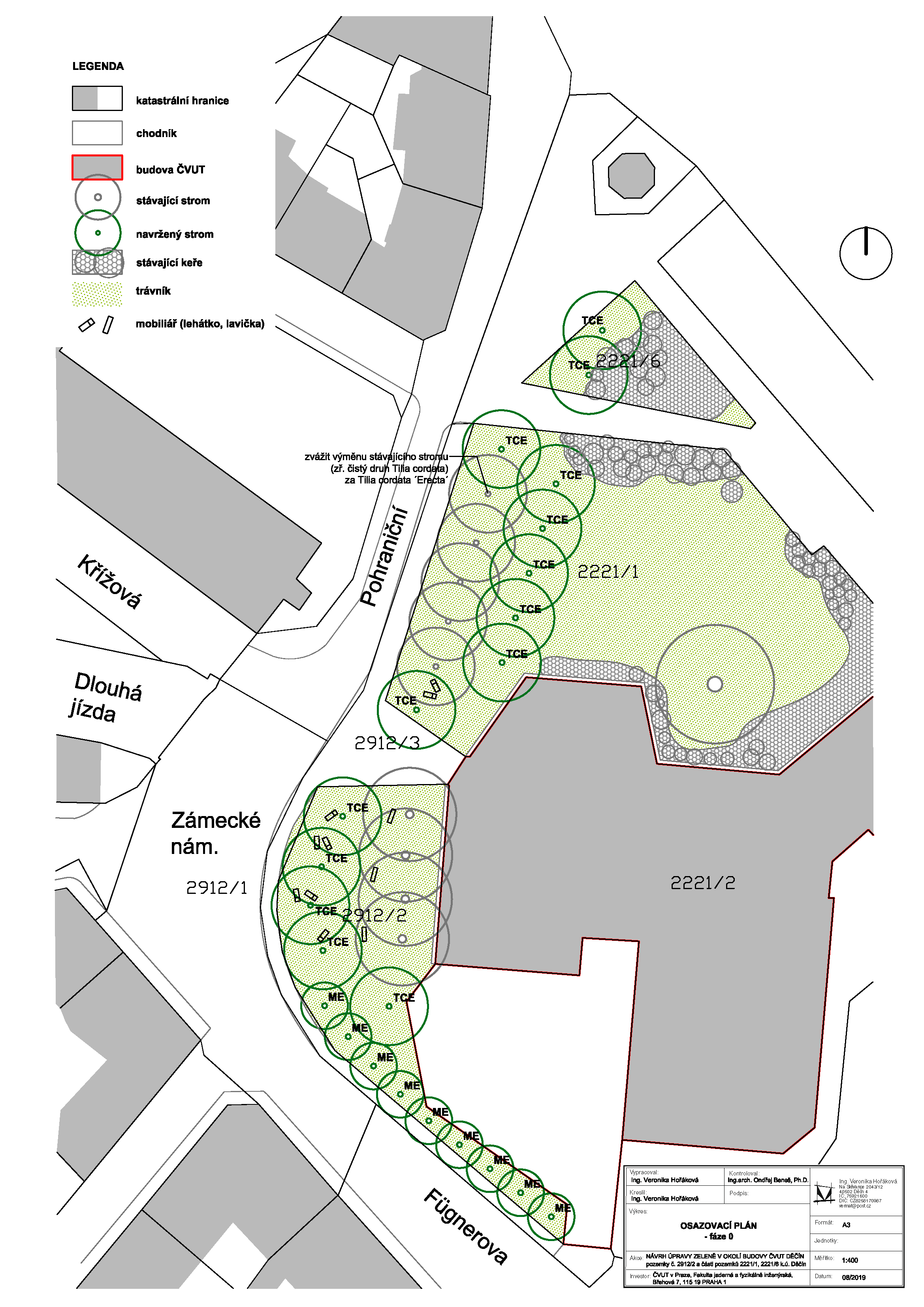 Prostor svým uspořádáním a kvalitou stávajících vegetačních prvků neodpovídal (funkčně ani esteticky) požadavkům na městskou zeleň. Keře před zadním vchodem byly navíc často využívány jako veřejné WC a hromadily se zde odpadky. Proto si v roce 2019 ČVUT nechalo zpracovat ideovou studii "Návrh úpravy zeleně v okolí budovy ČVUT". Tato studie připravila podklady pro novou podobu zeleně v ulici Pohraniční. Nelehkého úkolu vtisknout tomuto prostoru novou podobu se ujala Ing. Veronika Hořáková pod vedením tehdejšího městského architekta Ing. arch. Ondřeje Beneše, Ph.D. Hlavní myšlenkou ideové studie je optické oddělení historické zástavby kolem děčínského zámku od novodobé budovy ČVUT. Přestárlé keře kromě nevýhod uvedených výše neposkytovaly chodcům stín, navíc působily jako bariéra kolem budovy. Po dokončení se zelená hmota z úrovně očí přenese do výšky, otevře tak chodcům pohledově celý prostor a vytvoří v létě tolik potřebný stín.