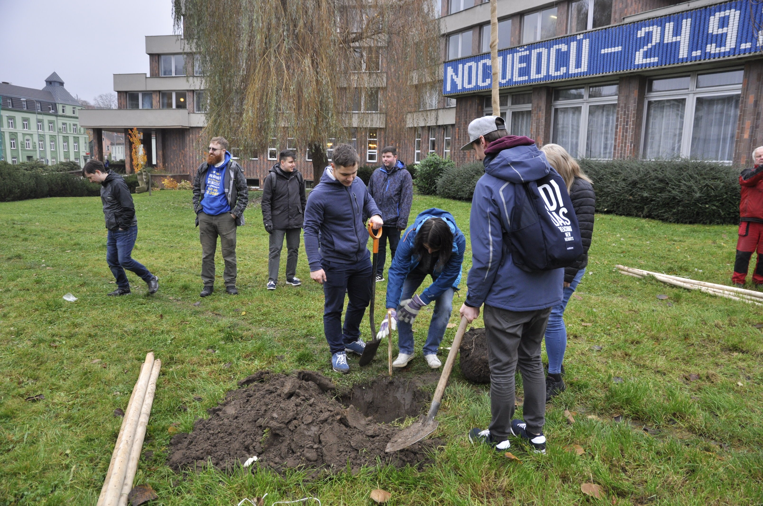 Jako další etapa úpravy zeleně následovala v roce 2021 výsadba stromů. Povolení ke kácení původních keřů bylo podmíněno náhradní výsadbou 8 ks stromů. My jsme jich vysázeli rovnou 25. Výsadba stromů byla podpořena Státním fondem životního prostředí České republiky. Více o projektu se můžete dočíst na webu sazimebudoucnost.cz. Do výsadby se zapojili studenti i zaměstnanci ČVUT. Již v létě studenti Fakulty dopravní využili praktického cvičení a provedli vytyčení míst pro sadbu. Na podzim pak studenti Fakulty jaderné a fyzikálně inženýrské spolu se zaměstnanci vysadili celkem 25 stromů (16 lip a 9 okrasných jabloní) podle připraveného projektu.