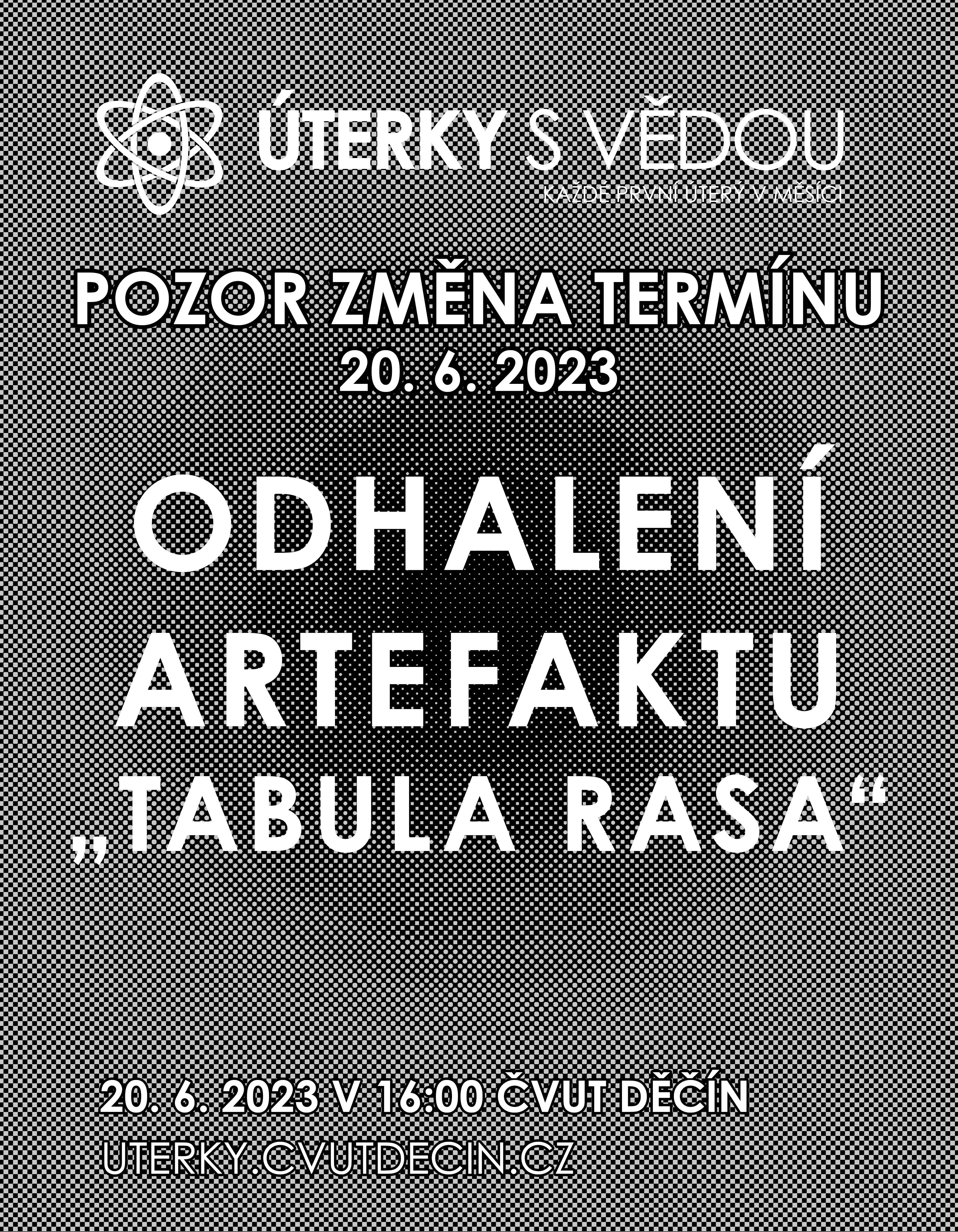 Před budovou ČVUT vzniká skleněný artefakt s názvem Tabula rasa. Na jeho vzniku se podílejí hned tři fakulty - fakulta architektury, fakulta elektrotechnická a fakulta jaderná a fyzikálně inženýrská. Samotný objekt symbolizuje dialog mezi umělci a vědci a zároveň popularizuje vědu a aktivity na FJFI. Znázorňuje fyzikální jev zvaný interference a je doplněn elektroinstalací reagující na experimenty v CERNu, se kterým bude propojeno osvětlení kolem skla. Instalace je součástí 5letého projektu CAAS. Přijďte 20. 6. 2023 v 16:00 hod na přednášku a odhalení, abyste se dozvěděli více o vzniku tohoto uměleckého díla a jeho autorech. Zjistíte například i kdy a proč bude svítit a proč je vlastně v Děčíně.
